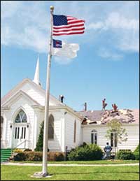 Members of that other church, Tonganoxie Assembly of God, recently have been meeting in a large Sunday school classroom at Tonganoxie Christian Church. The Assembly of God church, at Sixth and Church streets, was decimated in the tornado.