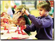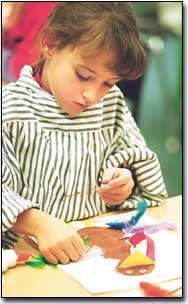Tonganoxie first-graders were busy last week making Thanksgiving art to share with their families. Darien Kramer, a student in Brenda Frost’s class, glues feathers on a turkey. Nikole Beggs helps her turkey find its legs. The three students on the right side of the page are in Linda Vernon’s class.