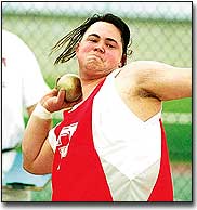 - Kent Clubine puts his back into it during the shot put competition at last Friday’s Cardinal Relays at Eudora. Clubine took third in the event. The boys team finished second. See page 2B for complete meet results.