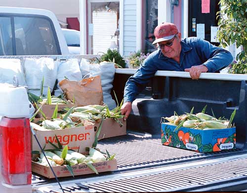 - George Lingenfelser makes a delivery of fresh-picked sweet corn to downtown Tonganoxie businesses.
