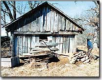 This cabin, about 18 feet wide by 20 feet long, is said to have been built by the government for Delaware Indians in the early 1840s. About the only original part of the cabin is just below the roofline, where the horizontal, hand hewn timbers with champer cuts fit together. The cabin, on property belonging to John Lisson, is about six miles southeast of Tonganoxie near Stranger Creek. Kerry Holton, pictured, who farms the property, checks out the cabin.