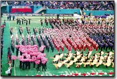 The Tonganoxie band was distinguishable on the field because it was the only band with red pants.
