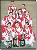 Shown with trophies the Marching Chieftains won at the Cotton Bowl are, back row from left, Britain Stites and Alan Davis; middle row from left, Tori Smith, Melissa Ward, Sarah Melchoir and Melissa High; and front row from left, Rachel Clark, Rachel Fish and Sarah Subelka.