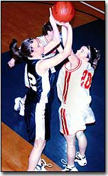 At that point, Korb took a charge and hit the front end of a one-and-one, but Hayden answered back with a two-pointer to close out the half up 18-14.