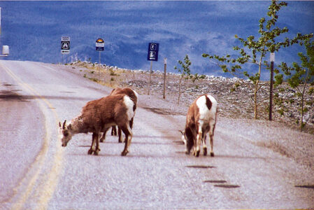 - These goats, standing in an Alaskan highway, appear to be oblivious to oncoming vehicles. Shellie Hardisty took this photo in June, on the first leg of what she plans to be a year-long trip.