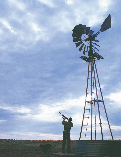 - Jerrod Pearce takes aim while hunting for dove in Comanche County, in southwest Kansas, with his father.