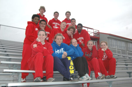 The Tonganoxie High track team keeps things close and loose. This year's seniors are: (front row from left) Katie Chenowith, Elise Drennan, Christy Weller, Roxi Grizzle, Sami Franiuk (middle row) Isiah Sawyer, Chance Rawlins, Wesley Armstrong, D.J. Gray, Kendrick Whittington (back row) Eric Hart, Patrick Holton, Tyler Gurss, Gabe Belobrajdic and (not pictured) Tracie Hileman.