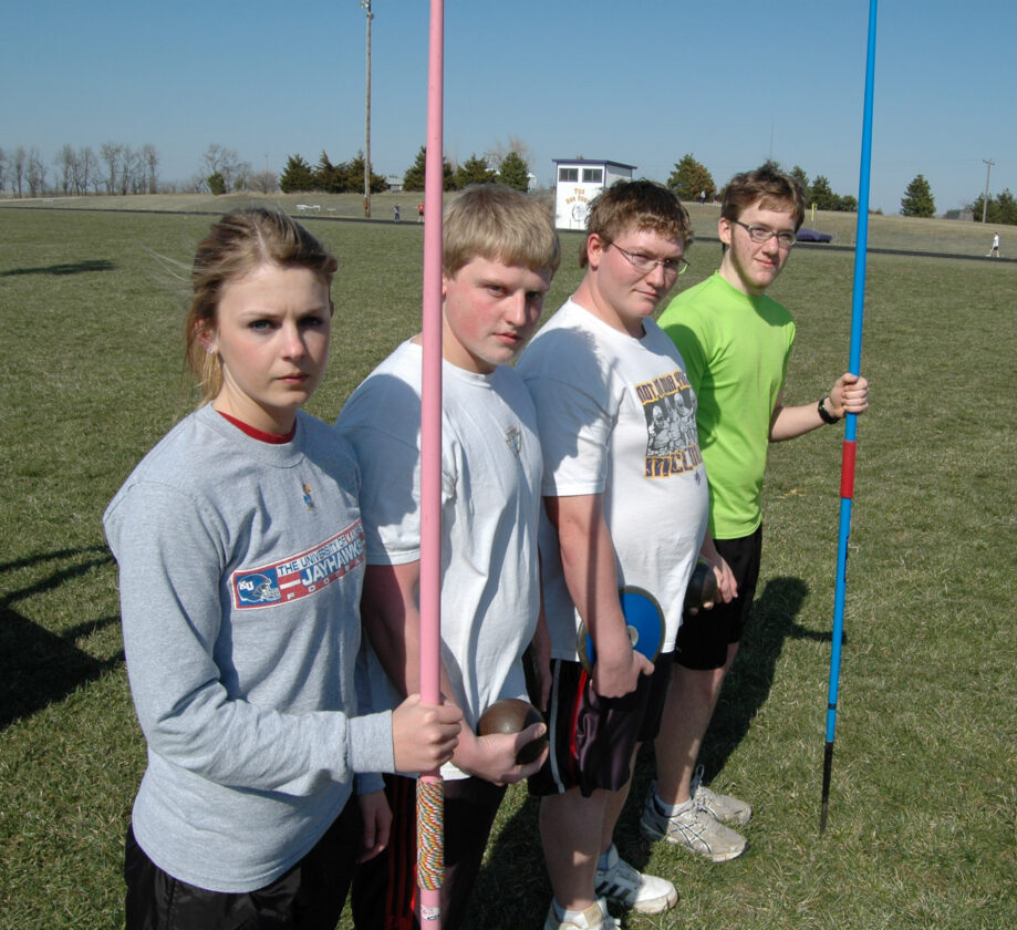 Just four deep, the McLouth High track team's seniors - Leah Hoffhines, David Buckley, Jesse Snyder and Grant Smelser - all compete in throwing events for the Bulldogs.