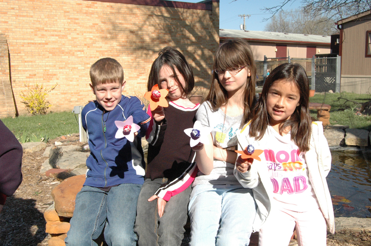 - Third-grade students at Tonganoxie Elementary School show off Tootsie Pop “flowers” they made for a fundraiser that will help purchase flowers and other items for the TES outdoor classroom. From left are Luke Falk, Braden Shyrock, Lucy Collings, Destiny Thompson and Anah Puevla.