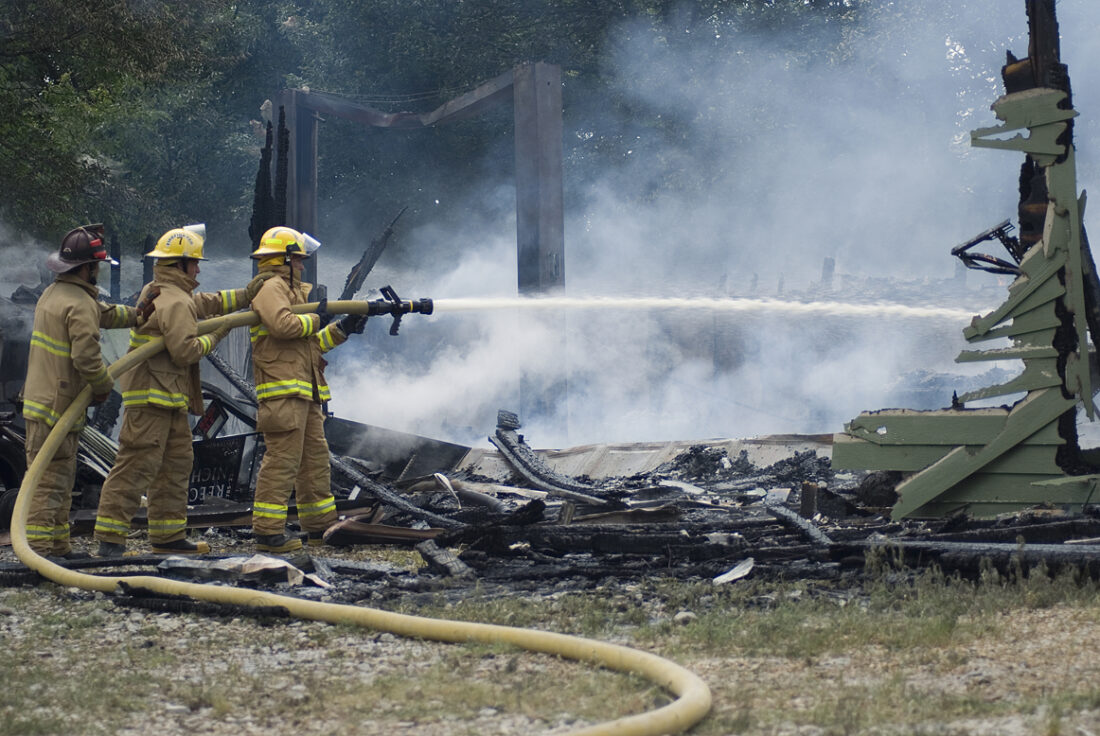 - Firefighters finish putting out a fire that destroyed a detached garage and workshop on Monday, just south of Kansas Highway 32 and County Road 1. There were no injuries reported. The cause of the fire is still under investigation.
