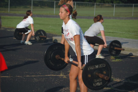 - Lauren Himpel, a senior cross country runner and softball player at Tonganoxie High, lifts weights on Friday morning as part of the athletics department’s summer workout program. Girls and boys from each THS sport trained throughout the summer to prepare for the coming school year.