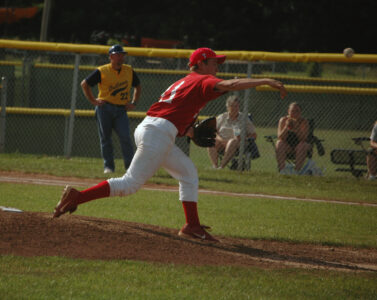 Post 41 pitcher Kyle Newton, pictured in this Mirror file photo, threw two innings of relief in Tonganoxie's 16-6 victory against the Lansing Cubs on Thursday.