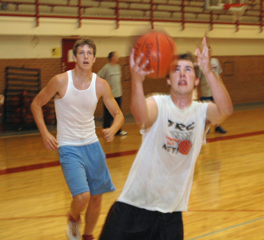 - Jamie Everett, right, goes in for a layup as Austin Smith follows during Tonganoxie High basketball camp in June. The Chieftains spent their Monday evenings that month competing against other prep teams from Kansas and Missouri at Rockhurst University in Kansas City, Mo. Tonganoxie won three of their last four games in the summer league and went 4-6, overall.