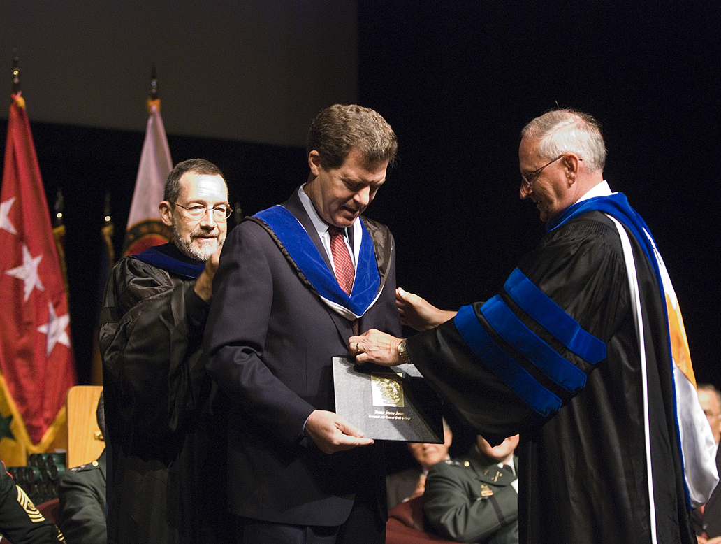 U.S. Sen. Sam Brownback was given an honorary degree during the Command and General Staff College graduation ceremony Friday at Fort Leavenworth. Brownback replaced U.S. Rep. Steve Israel as the commencement speaker after Israel couldn't make it to the Fort because of the weather.