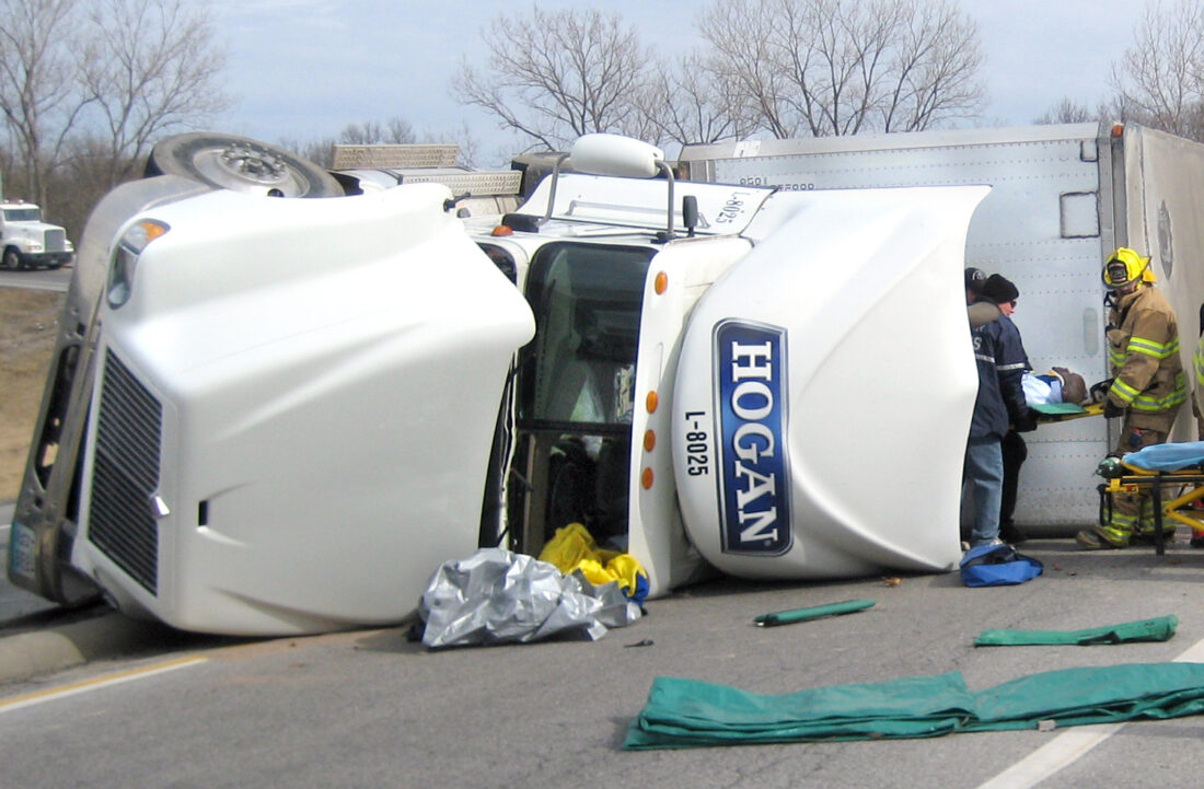 Art Rizo, Kansas City, Kan., was driving behind Colbert when the rig tipped. Rizo said he saw the truck begin to tip three times before it finally went over and that it looked like a problem with the truck’s brakes may have caused the accident.