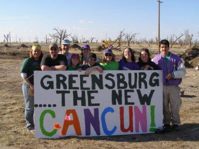 - A handful of Kansas State University students spent spring break helping rebuild Greensburg, which was hit by an enhanced F5 tornado in 2007. One of those K-Staters is Megan Holton, pictured fifth from the left, a Tonganoxie High School graduate now a sophomore at K-State. Several local students bypassed Cancun and other party spots to help others this spring break.