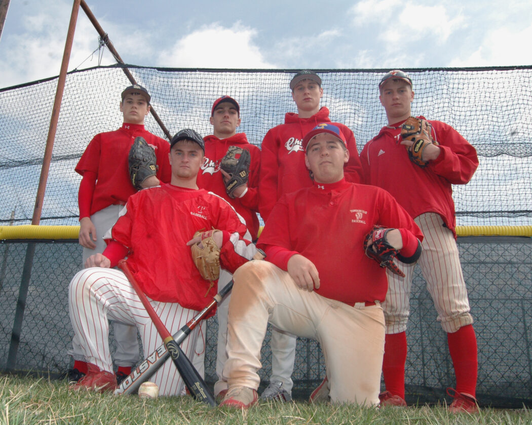 The Tonganoxie High baseball team has improved its win total each of the last two seasons. THS seniors (clockwise from top left) - Jared Lamb, Keith Wentz-Hall, Logan Forbis, Erick Lowe, Grant Ebbert and Todd Brown - hope to continue that trend in 2008.