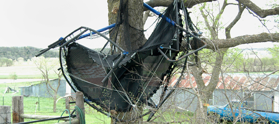 - Winds early Friday morning threw a trampoline near Andy and Stephanie Maurer’s rural Tonganoxie home into a tree. A nearby barn also was destroyed because of the severe storm.