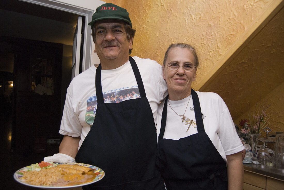 - Carlos Aguero holds his wife Ann and a plate of his enchiladas.