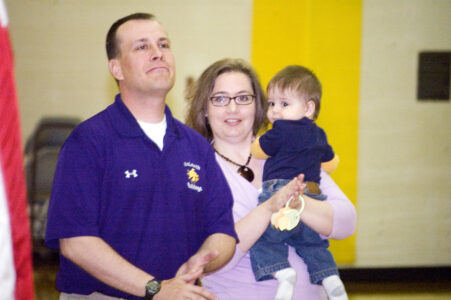 Shawn, Gretchen and Wyatt Miller are recognized Thursday morning at McLouth High during a special ceremony.