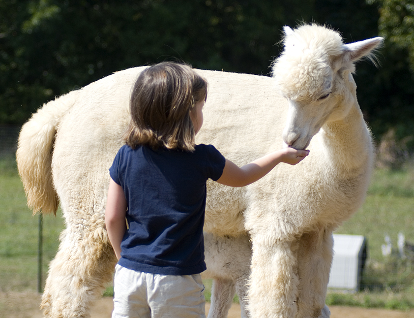 - Triton Davey, 4, gives Belinda the alpaca a few food pellets during her visit to the Kaw Valley Alpacas on Sunday. Kaw Valley Alpacas, owned by Macel and Bruce Koerth, was part of National Alpaca Farm Day.
