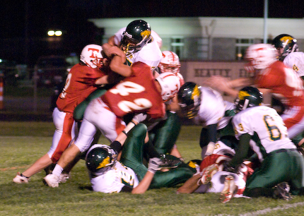 Tonganoxie (4-3) responded with an eight-play, 79-yard drive that included a 29-yard run by senior quarterback Zack Robinson, a 36-yard run by junior back Jeremie Maus and an easy one-yard score by Robinson to put THS ahead.