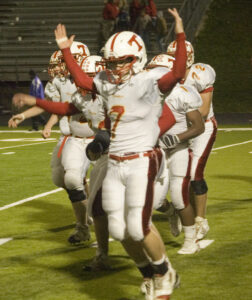 - Jeremy Carlisle leads the celebrating Chieftains off the field after Tonganoxie High forced Piper to turn the ball over on downs with 36 seconds remaining in a 29-26 victory at Piper on Friday night.