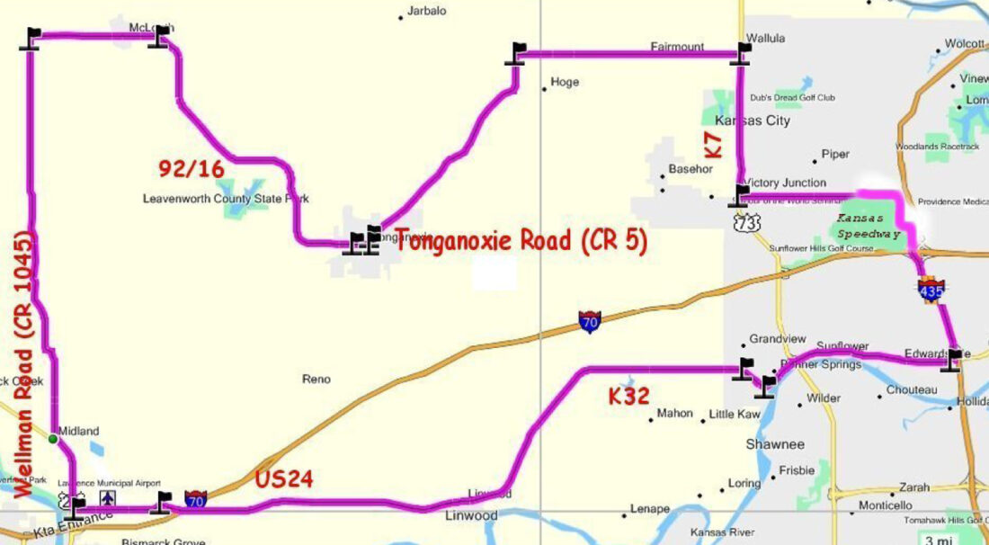This year’s ride will start with registration at 8 a.m. and opening ceremonies at 9:15 a.m. at Kansas Speedway and will make a loop passing through Bonner Springs, Edwardsville, Linwood and Tonganoxie before ending back at the Speedway. Riders will be stopping along the route for gas and food and Lewis said she encouraged members of the passing communities to come out and wave as the riders go by.