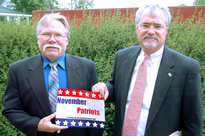 November Patriots Tom Stoffers, Tonganoxie, and Richard D. Fry, Olathe, are part of the grassroots campaign to get local voters involved in the election process.