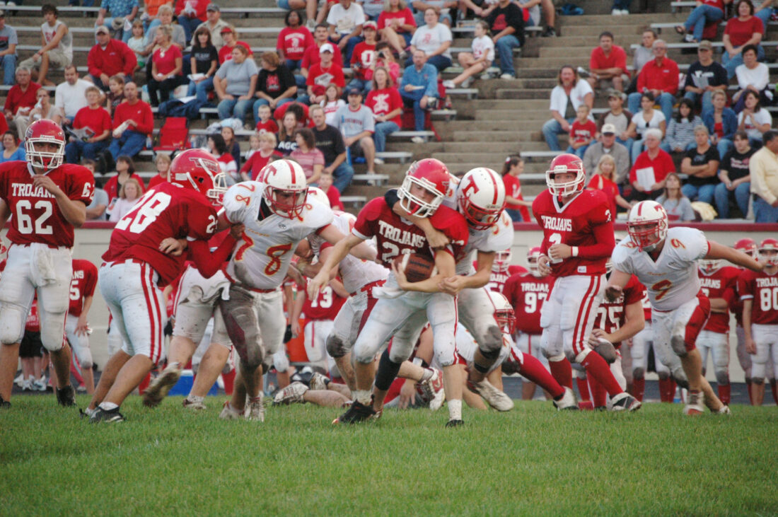 THS coach Mark Elston decided before the ensuing drive that his team wasn’t going to punt, but it never came to that anyway. Tonganoxie responded to the Trojans’ score by killing the clock with a 12-play, penalty-free, 7:19 drive that ended with Austen Holloway running in his second touchdown of the evening, leading the Chieftains to a 23-6 victory in their first road contest.