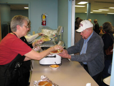 - Linda Lockwood, president of the Lansing Historical Society, serves Dusty Rhoads, of Lansing, during the society’s 2008 annual spaghetti dinner fundraiser at Lansing Community Center.