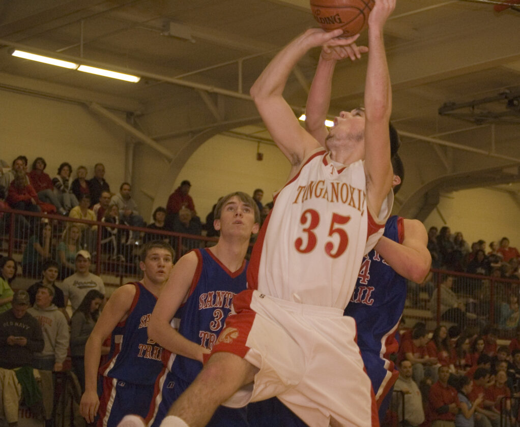- Keaton Schaffer finishes inside for Tonganoxie High during the Chieftains’ 58-44 victory over Santa Fe Trail on Friday at THS. Schaffer attacked the paint throughout the victory, scoring 23 points and dishing out four assists in the 14-point home win.