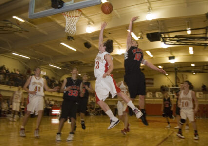 Keaton Schaffer scored a transition layup off a pass from Jeremy Carlisle to cut the deficit to two and Brandon Yoder finished a lay-in to tie the game at 41. Carlisle later grabbed a defensive board and went coast-to-coast for a score with 1:17 to go in the third to give THS a lead.