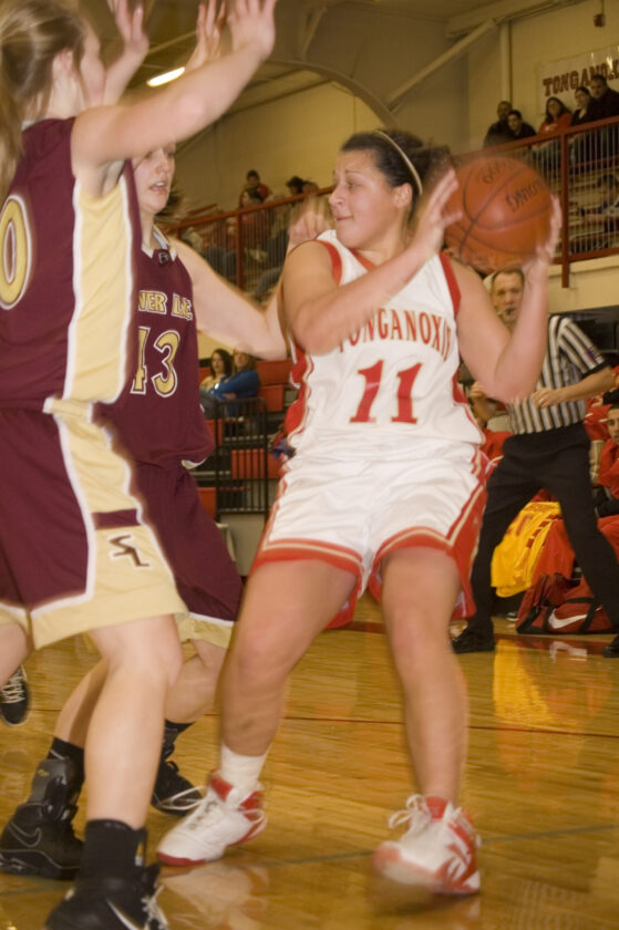 - Roni Grizzle looks for a teammate while being trapped against Silver Lake on Saturday. Grizzle scored 20 points and Tonganoxie High found a way to win the third-place game at the Tonganoxie Invitational with a 47-44 victory.