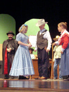 Pam Slawson directed this year’s production, which had a cast of 25 boys and girls ranging in age from 6 to 13. An estimated 150 people laughed and cheered as Sheriff Buzz Saw captured the villain, Sludge Slyskull, and won the heart of his darling Clementine.