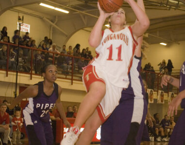 - Roni Grizzle goes up for a lay-in during Tonganoxie’s 54-36 Senior Night loss to Piper.