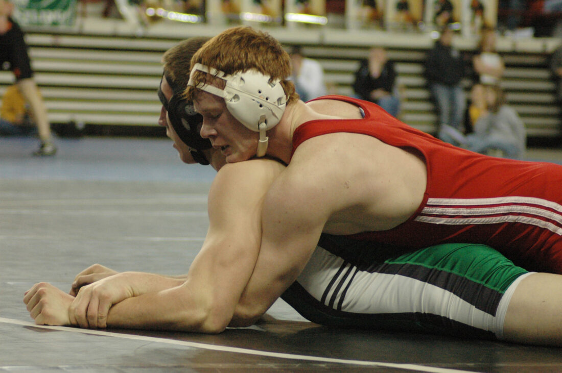 - Steve Davis holds his opponent down at the state wrestling tournament.