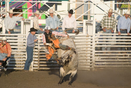 - A bull rider competes Thursday at the Abdallah Shrine Rodeo.
