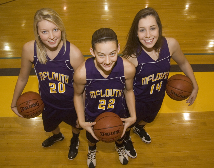 McLouth High girls basketball seniors Kylie Shufflebarger, Missy Rome and Cassidy Bristol lead the Bulldogs into the 2009-10 season under new head coach Bob Good.