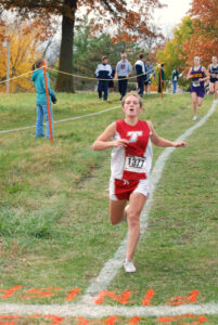 - Andie Jeannin heads to the finish line at a cross country regional on Saturday at Wyandotte County Park. The Tonganoxie High senior finished 16th in the girls 4K and earned a trip to state.