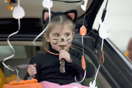 - A Tonganoxie girl takes a bite out of some candy during Halloween last year.