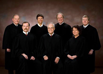 Kansas Supreme Court Chief Justice Robert E. Davis has retired from his seat. He is pictured in this official photograph with the entire court. Seated (from left) are Justices Lawton R. Nuss, Davis and Marla J. Luckert. Standing (from left) are Justices Lee A. Johnson, Carol A. Beier, Eric S. Rosen and Dan Biles. With Davis' retirement, Nuss becomes chief justice.