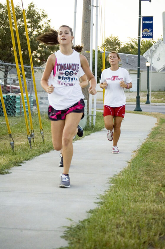 It is a sweltering August evening out in front of Tonganoxie High School as a group of students steadily grows in size minutes before the start of a cross country workout.