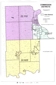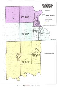 According to 2010 Census figures, the Proposal 1 boundaries would leave the 3rd District with a population of 22,925, while the 2nd District population would be 22,907 and the 1st District population 21,820.