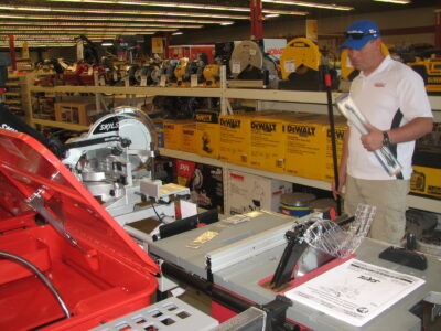 Walking the store’s aisles at about 11 a.m., Wallace held in his hand a list of supplies to buy — created with help from his wife — including a squeegee and an electrical cord. But he also took some time to peruse the store’s selection of power tools.