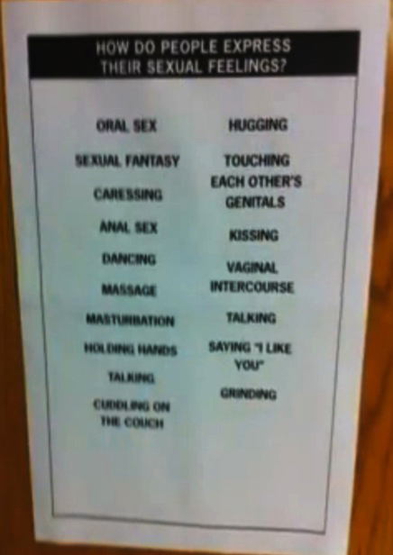 - This sex-ed poster from Hocker Grove Middle School in Shawnee has inspired legislation that would require districts to receive written permission from parents before students would be allowed to take part in sex education classes.