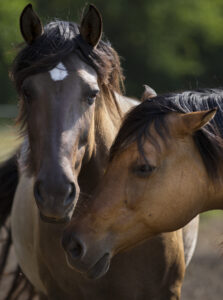 - A couple of mustangs keep close together on Wednesday, June 22, 2016, at their ranch southeast of Baldwin City. Randy Billinger says the horses prefer to stay close together as is in their nature as herd animals.