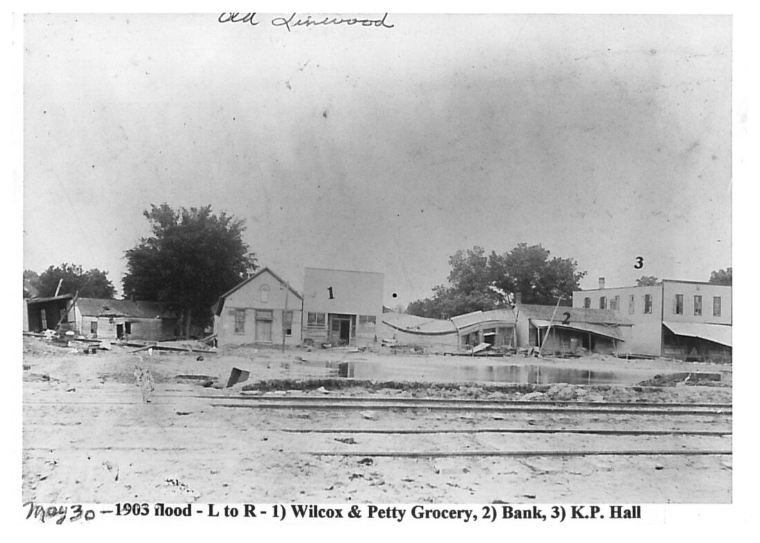 - The May 1903 flood causes damage in Linwood. A portion of the community had to be moved because of the flooding on the river.