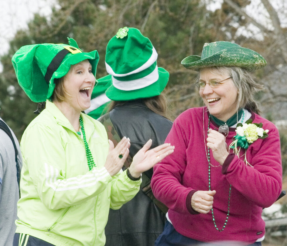 - Debbie Breuer, left, and Kay Soetaert, ride on the back of the County Road 5 Band’s float. Breuer and Soetaert helped organize the St. Patrick’s Day Parade.