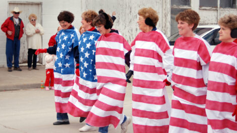 - The Walking Flag marched down the street during McLouth’s 2007 Patriots’ Day Parade. From left are Bank of McLouth co-workers Alicia Wood, Kathy Scott, Sandy Wise, Fern Braksick, Jennifer Pint and Connie Hutchinson. The ladies have been in the parade since 2003.